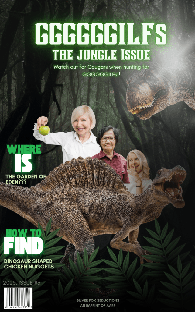 Out of compassion for our seniors, and the need to bolster our Q4, we are introducing a set of themed magazines hoping to spark some good-hearted wanking amongst our wizened dodecagenarians, and maybe a few orgies. Using our new “after hours” branding called, Silver Fox Seductions, AARP will be launching the following magazines to service the erotic needs of today’s senior citizens, and from all the generations prior.