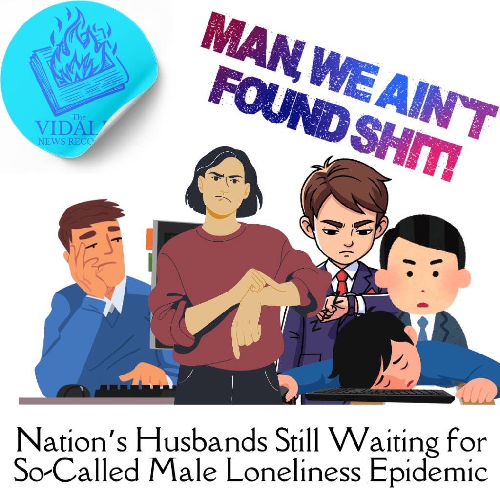 At a press-conference of The Nation’s Husbands today, the nation’s husbands announce that they are waiting for the “so-called” epidemic of male-loneliness to strike.